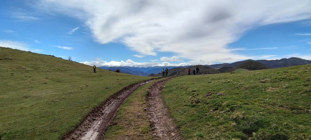 Luego, una carrilera ganadera nos llevará (NO – N; 0’250 km) ante la cabaña de la braña Vieja (1.170 m), desde cuya fachada oriental subiremos(NO: 345º; 0’725 km) por el cortafuego hasta las Tsanizas (1.320 m), para remontar (NO: 300º; 0’425 km), entre tsamargas, brezos y escobas, alcutsadínla Vatsinona (1.451 m), a partir del que, por la crestería adelante (SO: 240º; 0’375 km), alcanzaremos L’Urru de pena Manteca (1.521 msnm), situado en el mismo meridiano que Villablino (32 km. al sur) y Ballota (36 km. al norte).
